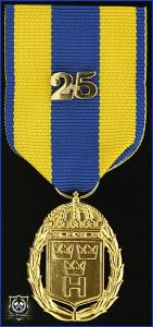 Hemvärnets tjänstgöringsmedalj i guld med parmonterad siffra för 25 tjänsteår