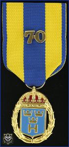 Hemvärnets tjänstgöringsmedalj i guld och emalj med parmonterad siffra för 70 tjänsteår